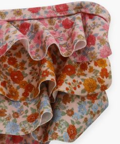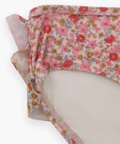 The Lucky Kids Frill Bikini Pant in Spliced from our Summer Swim 2025 Collection. A kids bikini pant with a triple frill detail at back.kids bikini swim bottom, lycra with shiny finish, bikini bottom with contrasting raw cut triple frill, pant only, top sold separately