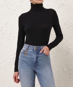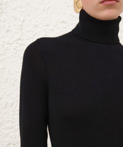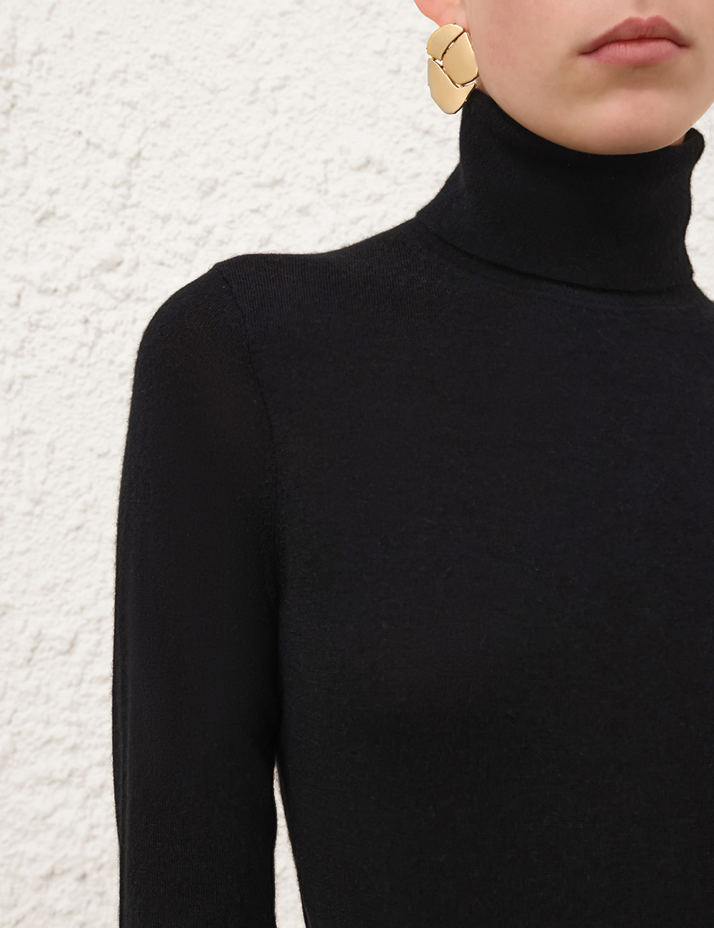The Cashmere Turtleneck Sweater in Black from our Fall 2025 Collection, Hypnotic. A cashmere sweater featuring a ribbed roll neck, cuffs and hem. 100% cashmere, slim fit silhouette, ribbed neck, hem and cuffs