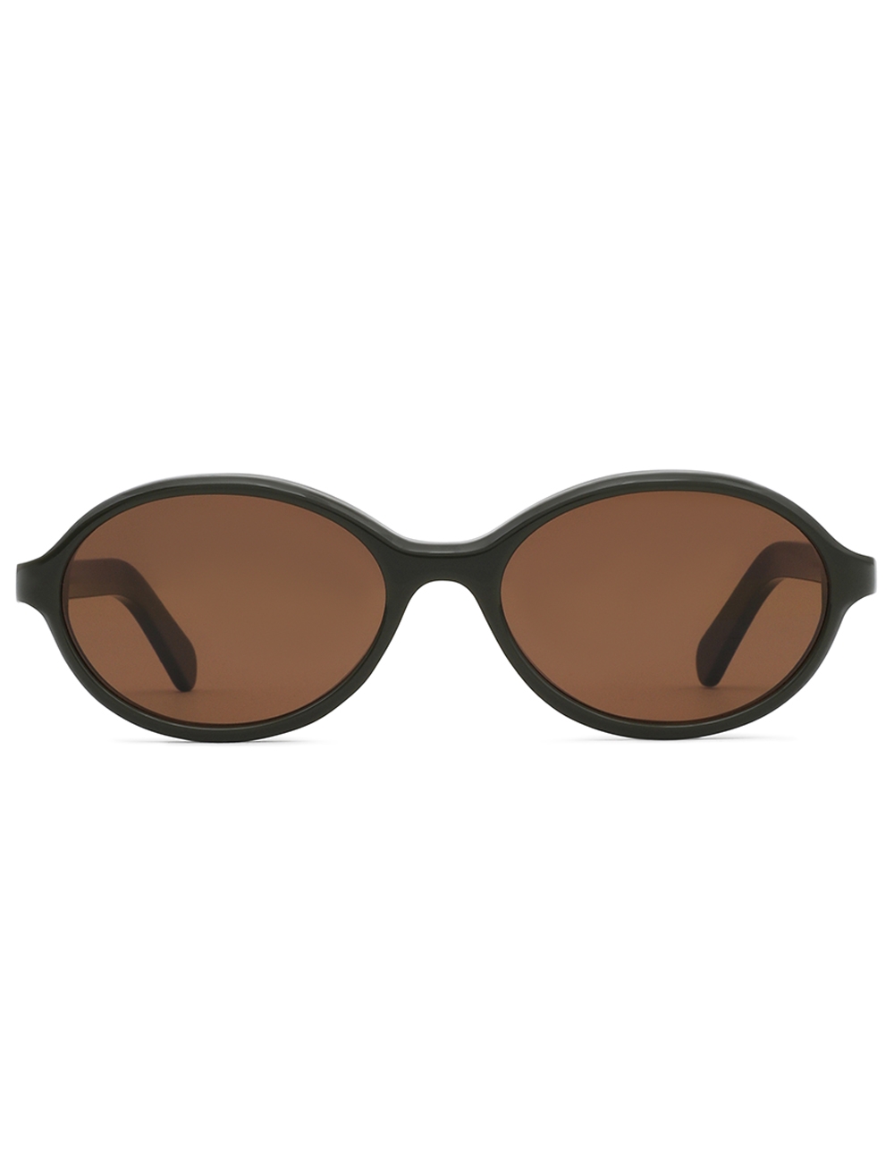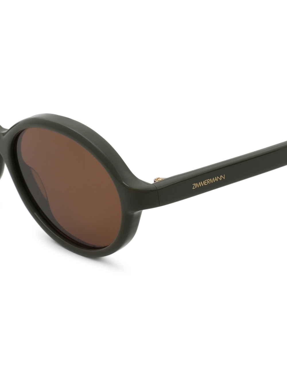 The Cyd Oval in Bottle Green from our Fall 2025 Collection, Hypnotic. An acetate frame featuring soft round and gradient lens. acetate frame, soft round finish, solid coloured lens, black lens are category 2, bottle green lens are category 3, comes with zimmermann case, dust bag and storage box