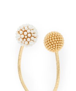 The Dandelion Cuff in Gold from our Fall 2025 Collection, Hypnotic. A gold plated wrist cuff featuring textured gold beads and tiny seed pearls.12kt gold plated wrist cuff, textured gold beads and seed pearls form floral-like clusters, glass pearl settings, slip on style, available in three sizes