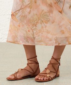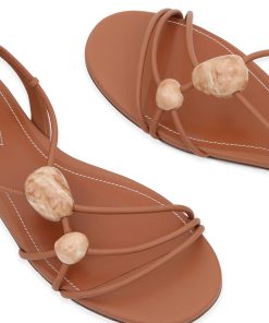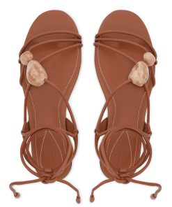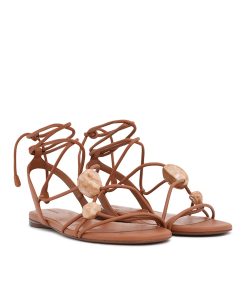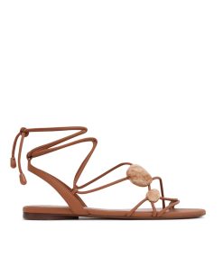The Gleam Sandal in Avalon from our Spring 2025 Collection, Illumination. A flat leather sandal featuring lace-up detailing and stone effect pebbles at the front. lace-up leather sandal, made in italy, stone effect pebbles, square toe, nappa upper and leather outsole
