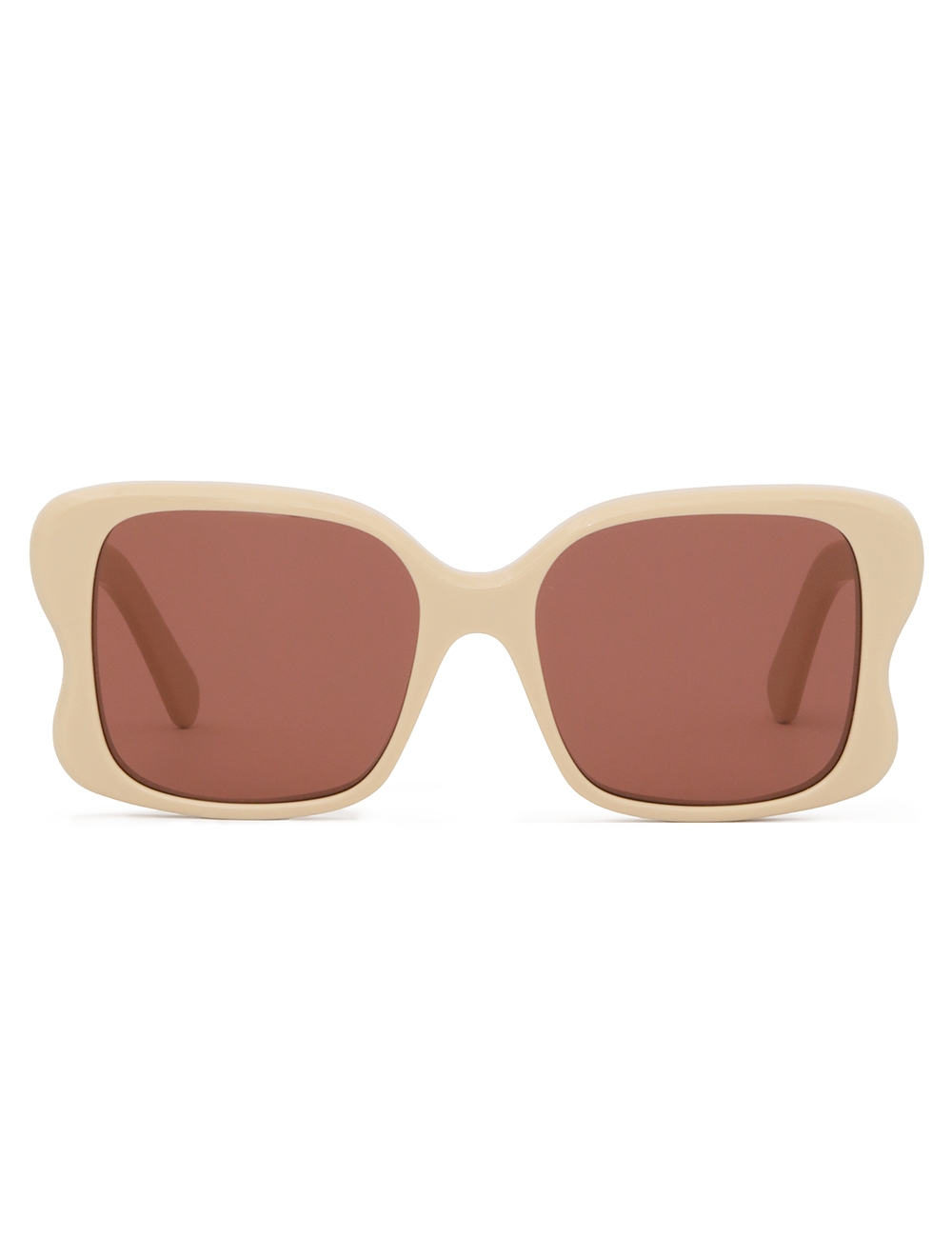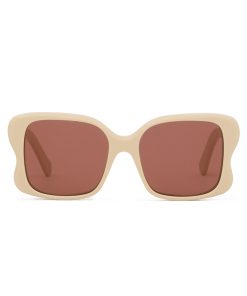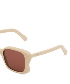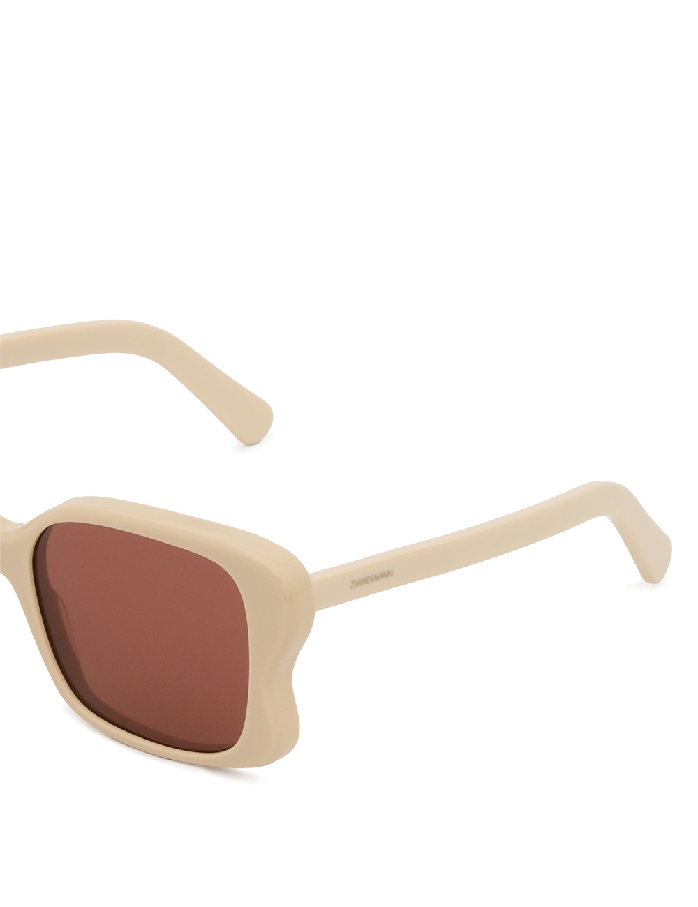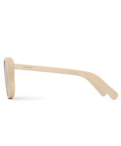 The Goldie Oversize in Cream from our Spring 2025 Collection, Illumination. An acetate oversized square frame featuring solid black lenses and signature temples with custom wire core for strength and durability. acetate frame, solid black lenses, temples feature a metal core for strength and durability, category 3 lenses, comes with zimmermann case, dust bag and storage box