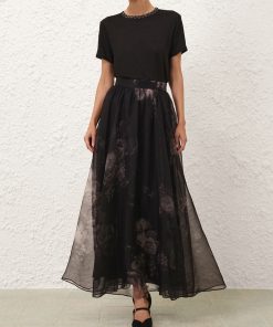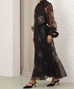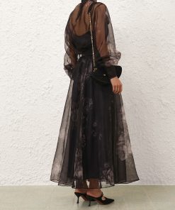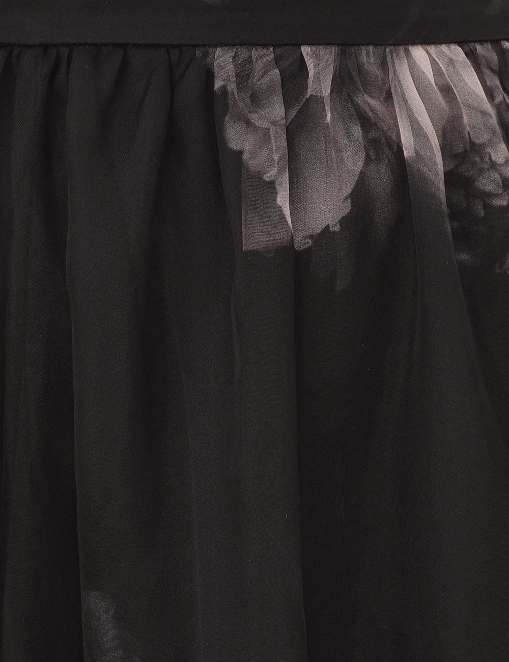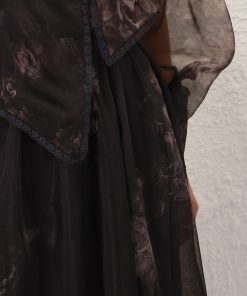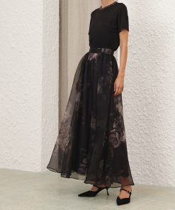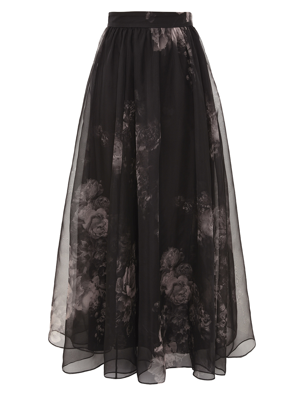 The Hypnotic Maxi Skirt in Ghost Floral from our Fall 2025 Collection, Hypnotic. A silk maxi skirt featuring a fixed waistband and heavy gathering throughout.100% silk fabric, layers of tulle throughout, invisible zip closure at left side, lined