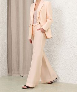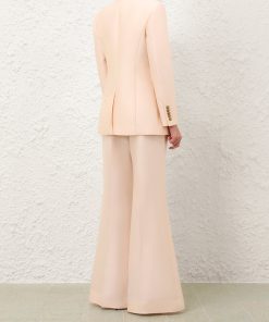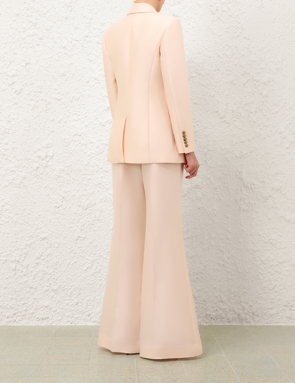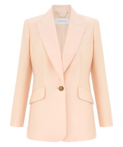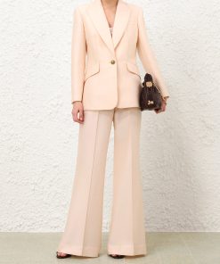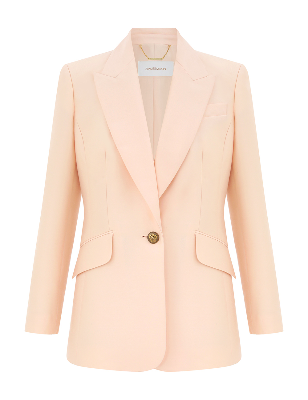 The Hypnotic Tailored Jacket in Cream from our Fall 2025 Collection, Hypnotic. A longline wool blend jacket featuring a single breasted closure, peak lapels and lightly padded shoulders.wool blend jacket, left chest welt pocket, branded buttons at front closure and sleeve cuffs, slanted welt pockets with flaps, single back vent, fully lined