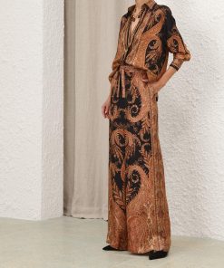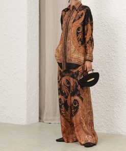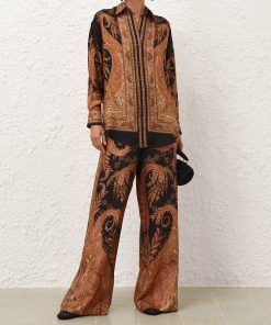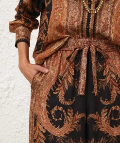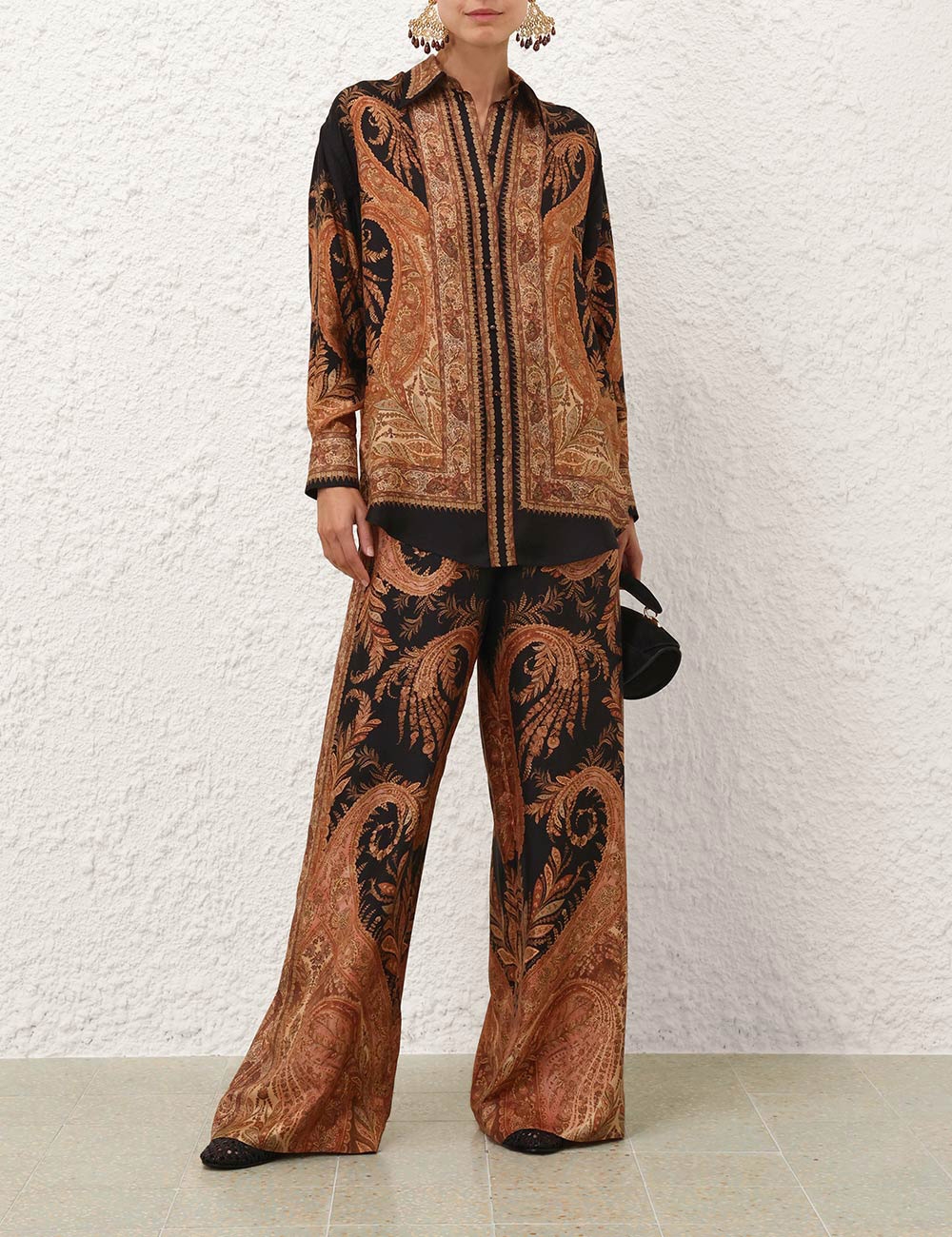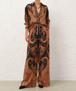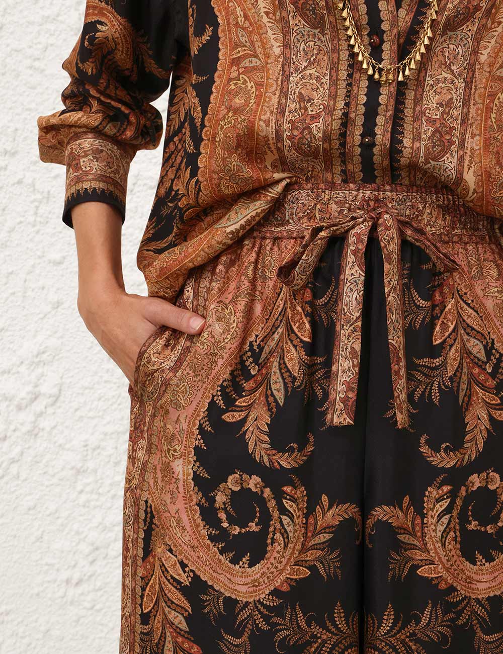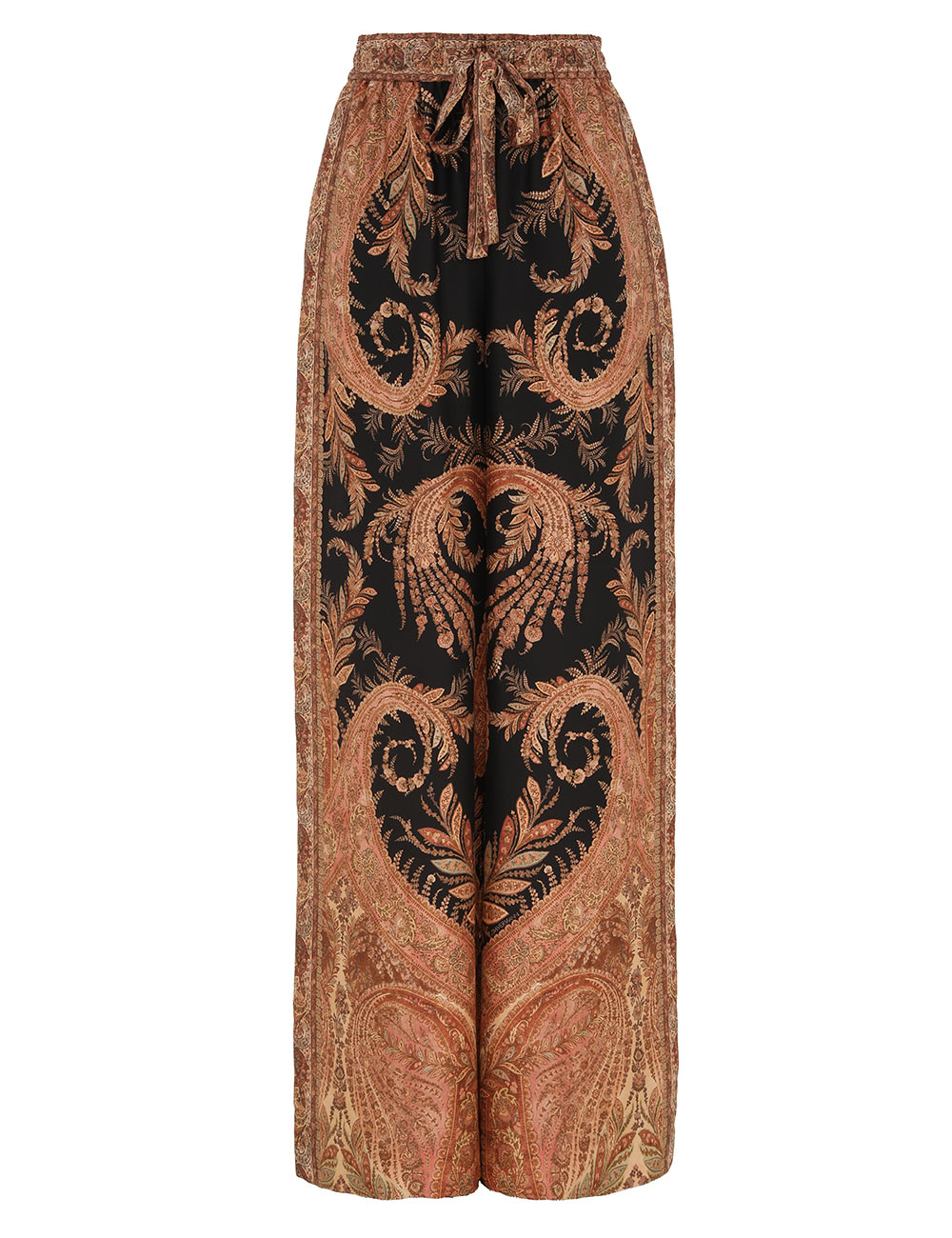 The Hypnotic Track Pant in Black Paisley from our Fall 2025 Collection, Hypnotic. A silk wide leg pant featuring an elasticated waistband with a self-tie drawstring and side seam pockets.100% silk fabric, relaxed wide-leg silhouette, elasticated waistband with self-tie drawstring, side seam pockets