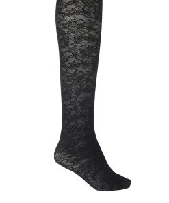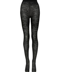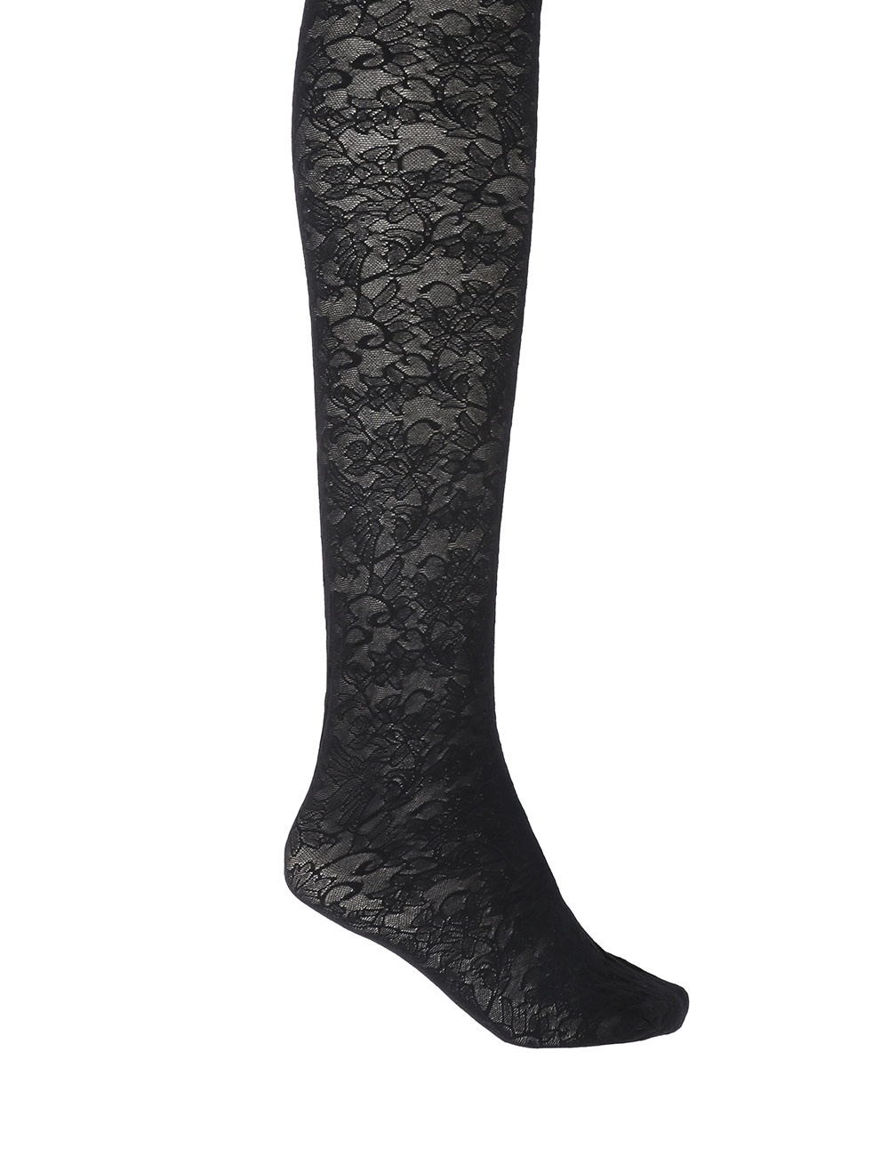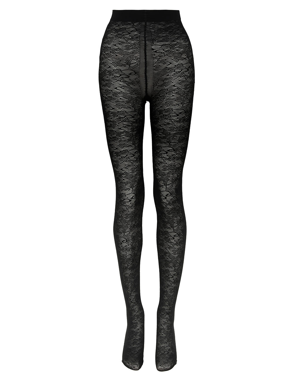 The Jacquard Tights in Black from our Fall 2025 Collection, Hypnotic. Full length tights featuring intricate lace detailing throughout and an elasticated waist.sheer lace tights with floral detailing, soft, stretch fabric for a comfortable, contoured fit, slip on style