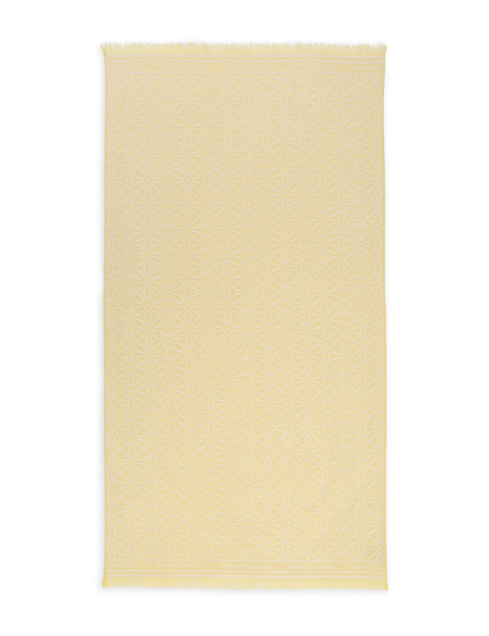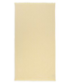 The Jacquard Towel in Yellow/Cream from our Summer Swim 2025 Collection. A cotton jacquard towel with fringed edging and branded ends. cotton, jacquard pattern throughout, fringed edging, 180cm x 100cm