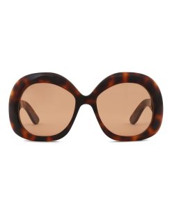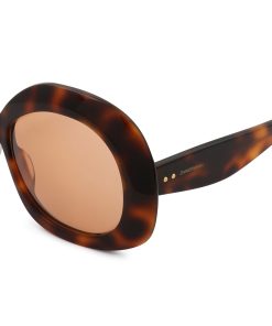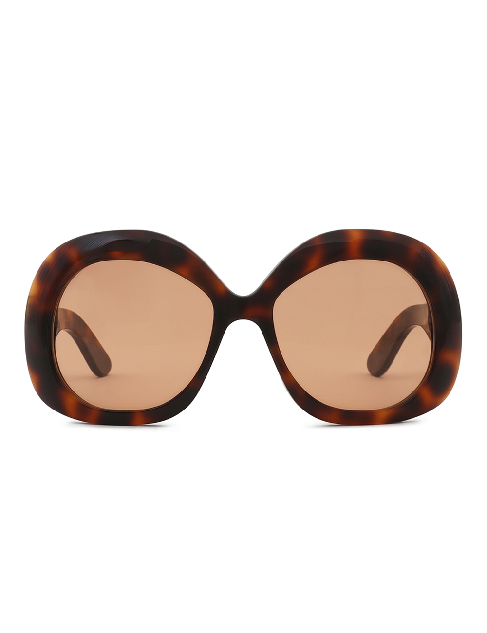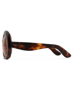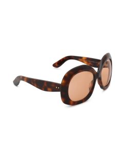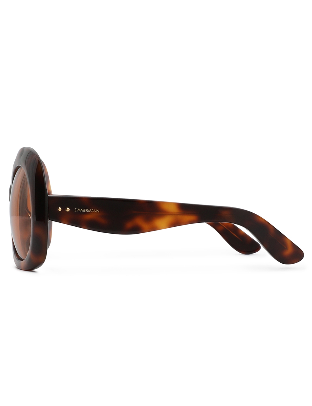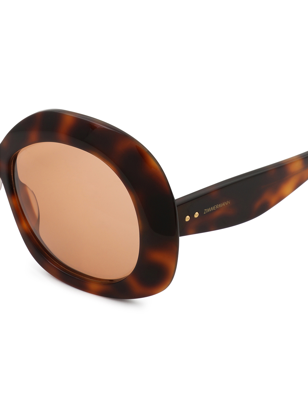 The Miranda Oversize in Orange from our Fall 2025 Collection, Hypnotic. An oversized round frame featuring signature wood-effect acetate, solid lenses and softly rounded bevelling. wood-effect acetate frame, solid coloured lenses, rounded bevelling, category 1 lenses, comes with zimmermann case, dust bag and storage box
