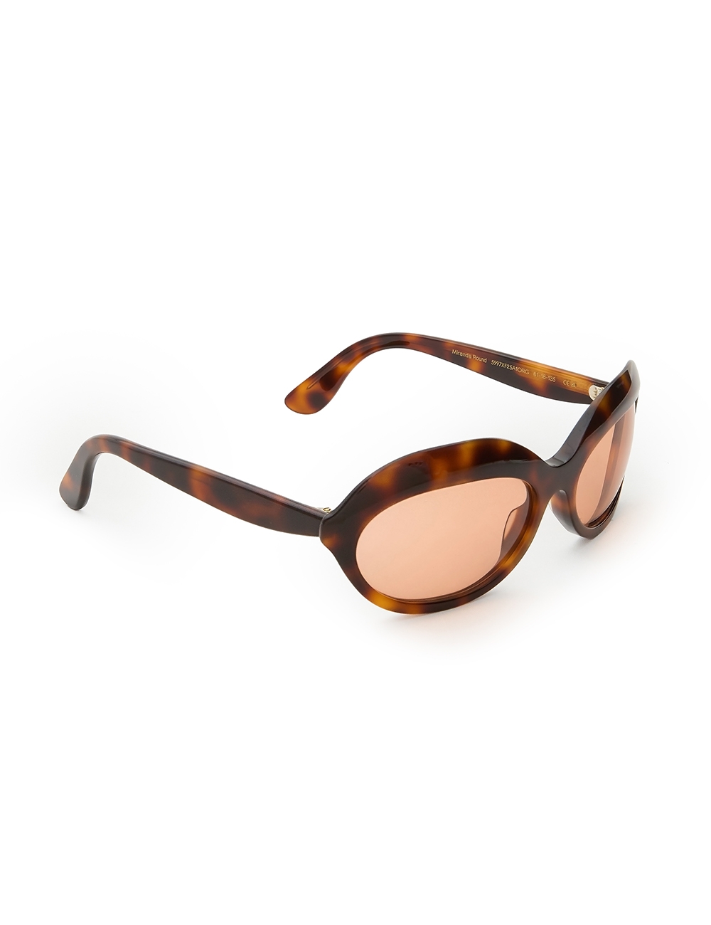 The Miranda Round in Orange from our Fall 2025 Collection, Hypnotic. An oversized oval-frame silhouette featuring an acetate frame and solid coloured lenses. acetate frame, solid coloured lenses, category 1 lenses, comes with zimmermann case, dust bag and storage box