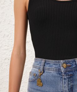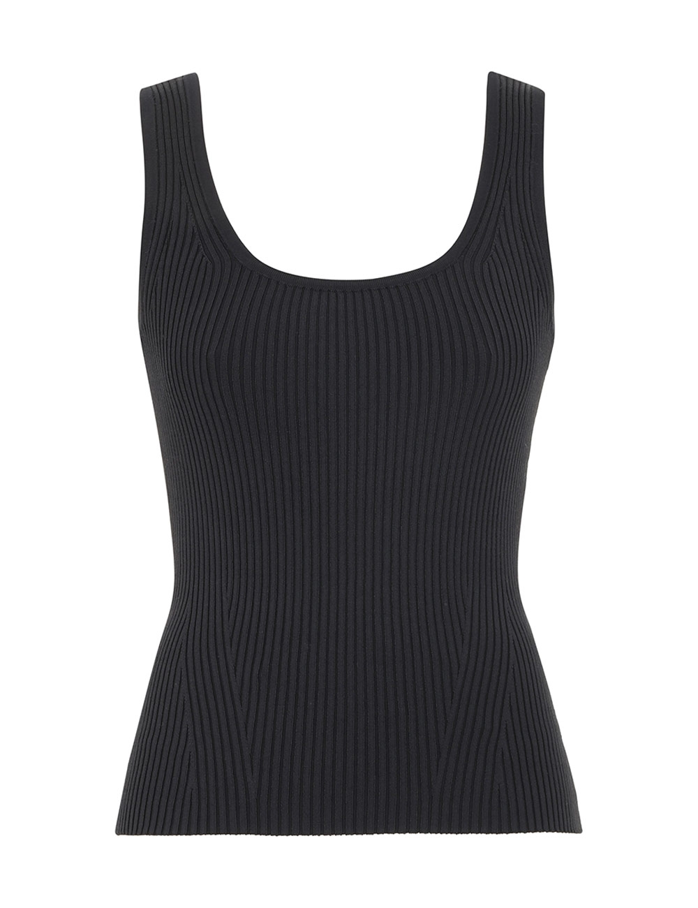 The Scoop Neck Tank in Black from our Fall 2025 Collection, Hypnotic. A ribbed knit, fitted tank with a scoop neckline at the front and back. fitted, ribbed tank, deep scoop neck