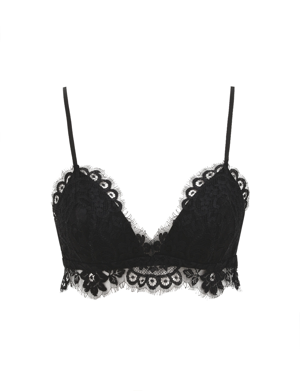 The Teddy Bralette in Black from our Fall 2025 Collection, Hypnotic. A cotton blend bralette featuring a plunging sweetheart neckline, lace scalloped trim and hook and eye closure at centre back. cotton blend bralette with lace overlay, lined underbust with supportive elastic, adjustable straps for versatile fit, scalloped edging, hook and eye closure at centre back