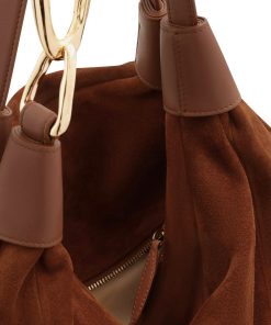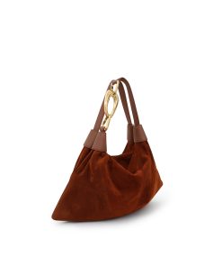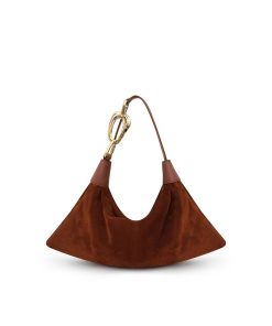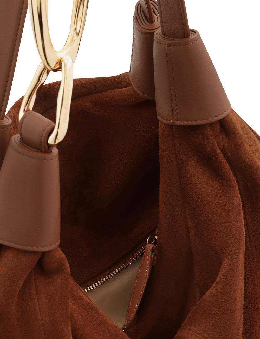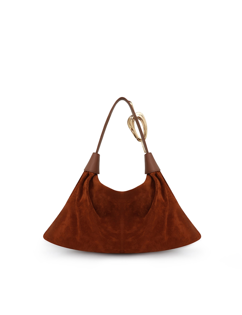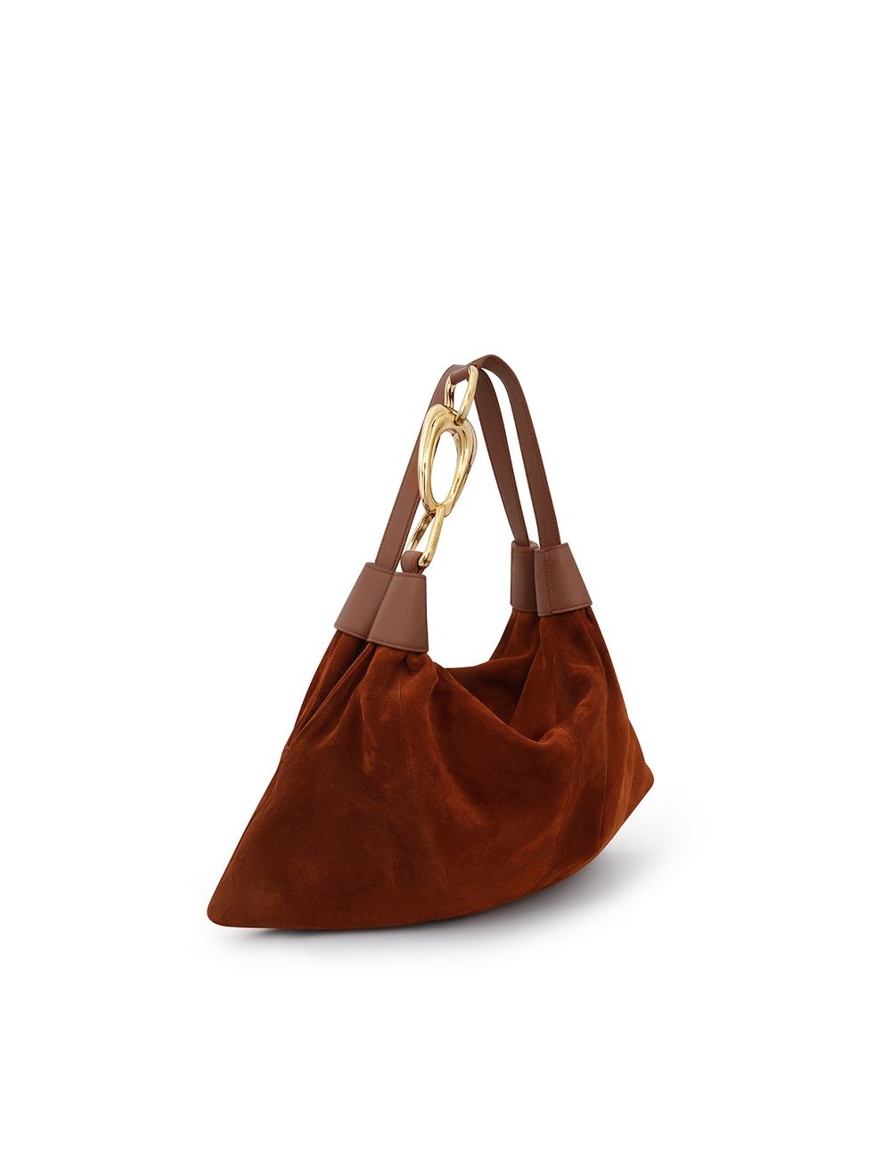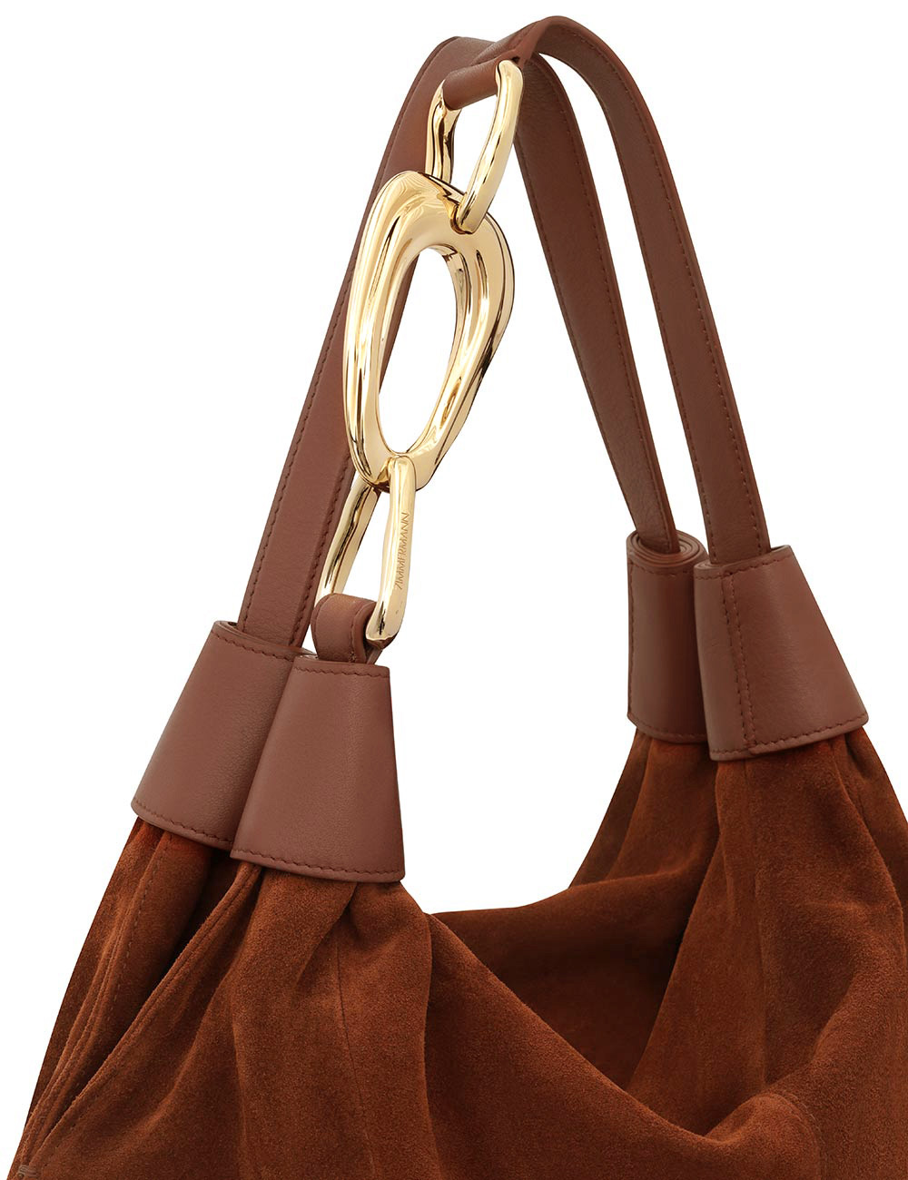 Inspired by the softness of a scarf, the Trampoline Small Hobo creates a supple, modern draping effect that embraces the body. Its relaxed silhouette is elevated by soft-grained leather handles and a bespoke organic chain-link hardware. Part of the Trampoline line, it blends natural texture with modern elegance, making it the perfect companion for everyday wear. suede, cotton drill lining, shoulder-carry and hand-carry, double-zip closure, internal slip pocket, made in romania