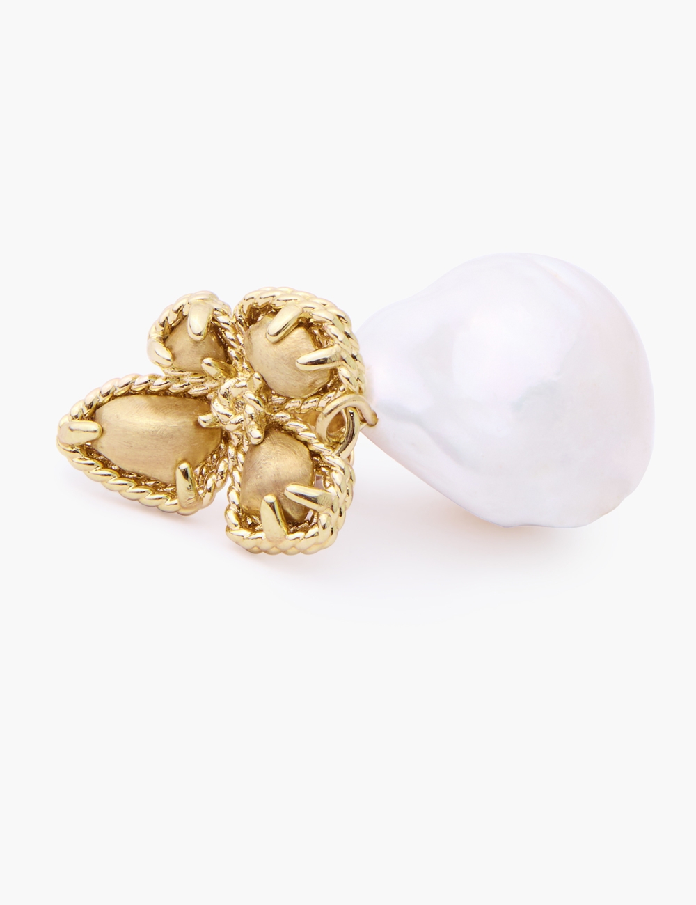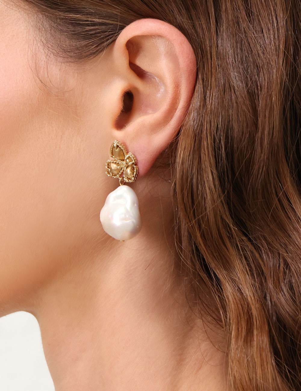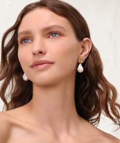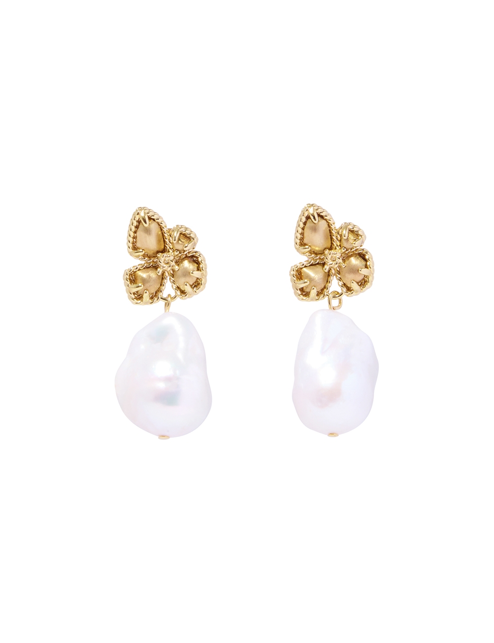 The Zimmermann Bloom Earrings in Gold/Pearl from our Resort 2025 Collection, Crush. A gold plated drop earring featuring baroque pearls. 12k gold plated brass, baroque pearls, stud post back, sold as a pair