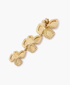 The Zimmermann Bloom Large Dangles in Gold from our Resort 2025 Collection, Crush. A large gold plated drop earring featuring stud post back. 12k gold plated brass, stud post back, sold as a pair