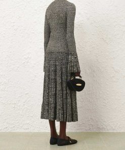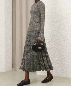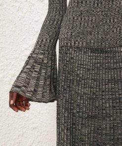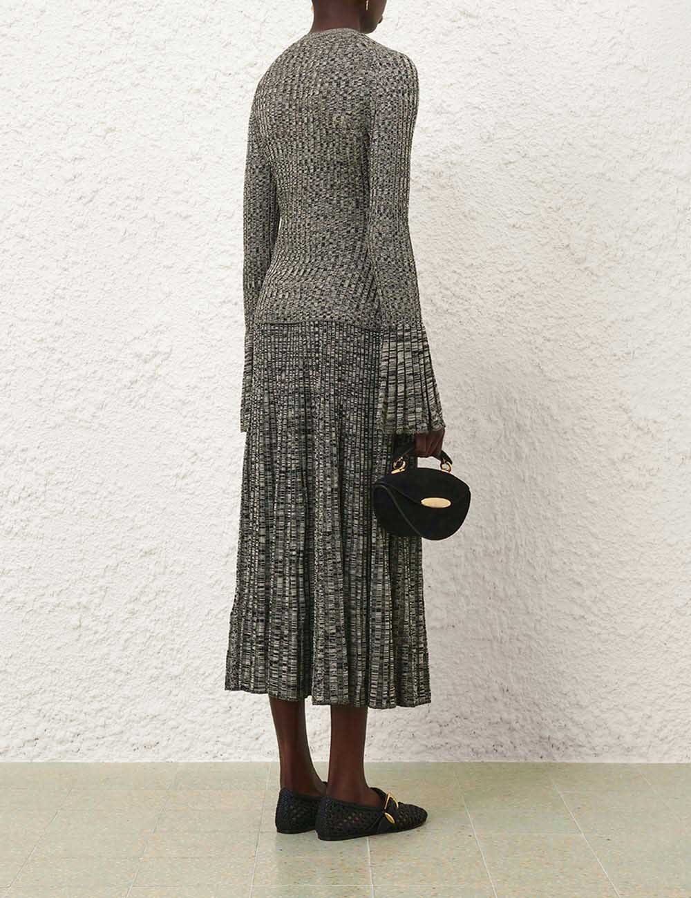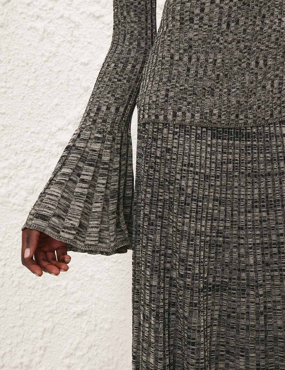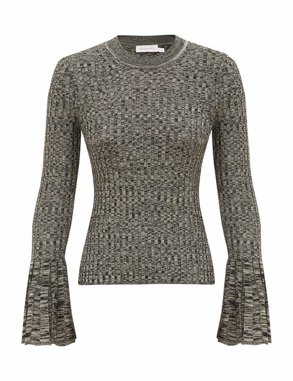The Mouline Bell Sleeve Sweater in Black Multi from our Fall 2025 Collection, Hypnotic. A knit sweater featuring a round neckline, long bell sleeves with wide cuffs and an all-over ribbed texture. knit sweater, long fitted sleeves with flared cuffs, ribbed texture throughout, slip on style