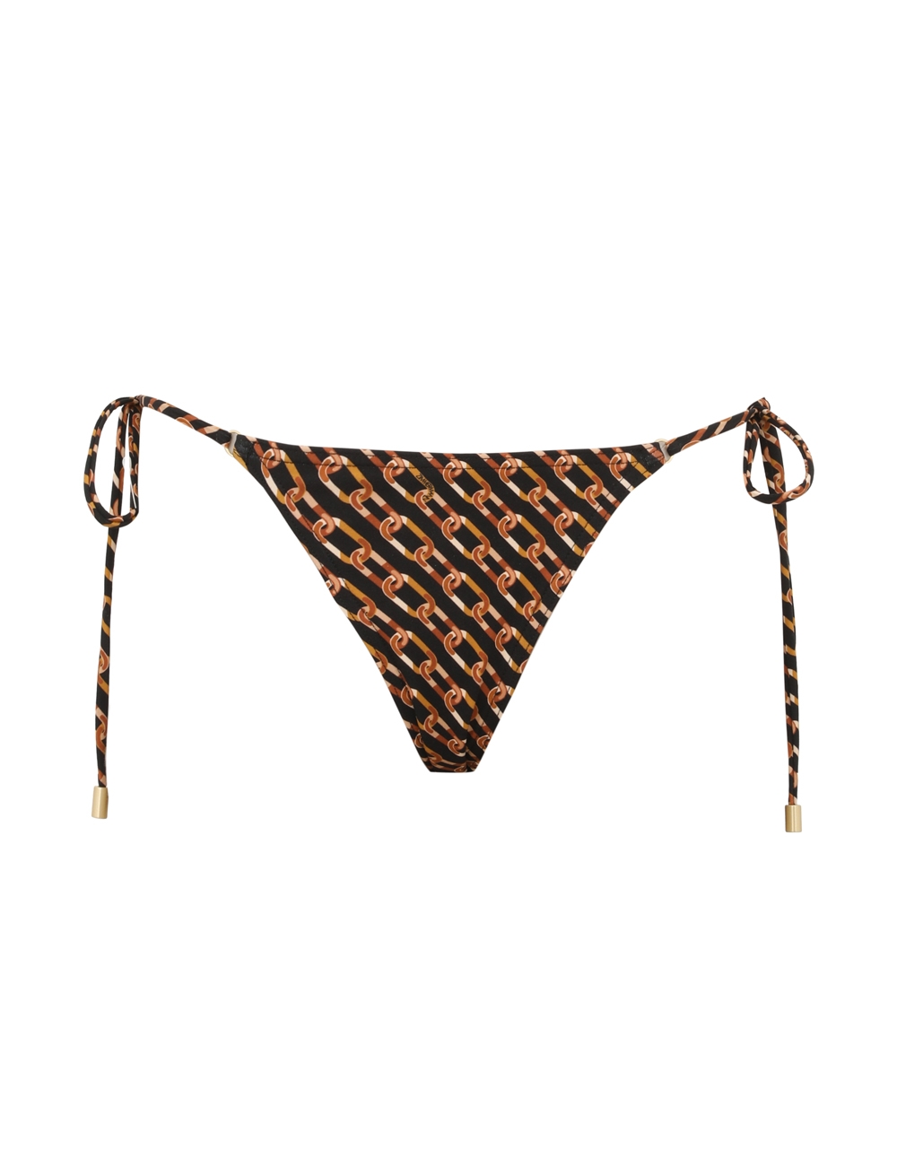 The Separates Mini Tri Pant in Chocolate Multi from our Summer Swim 2025 Collection. A skinny low rise bikini pant constructed from Italian lycra featuring self tie side straps. italian lycra, low rise, skinny bikini pant, adjustable self tie straps at both sides, matching toggle ends on straps, brief bottom coverage, pant only, bra sold separately