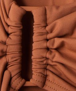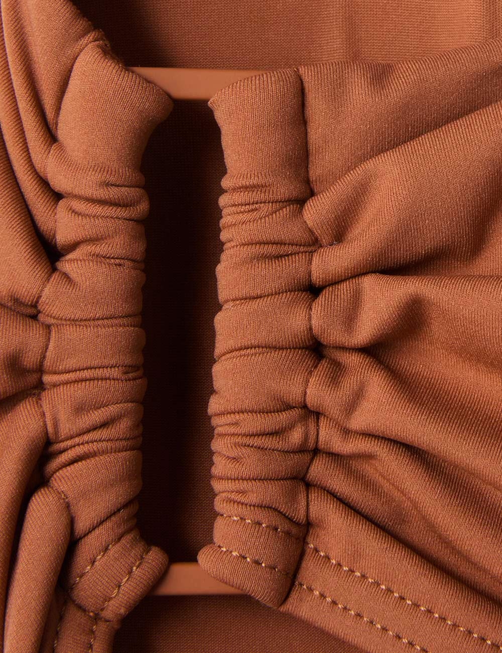 The Separates Wide Link Bikini Top in Tan from our Summer Swim 2025 Collection. A bandeau bikini top constructed from form-fitting Italian lycra featuring gripper elastic and boning in the side seams, finished with a wide link detail at centre bust. italian lycra, bandeau bikini top, gathered throughout, wide link detail at centre bust, removable cups, removable adjustable shoulder straps, top only, pant sold separately
